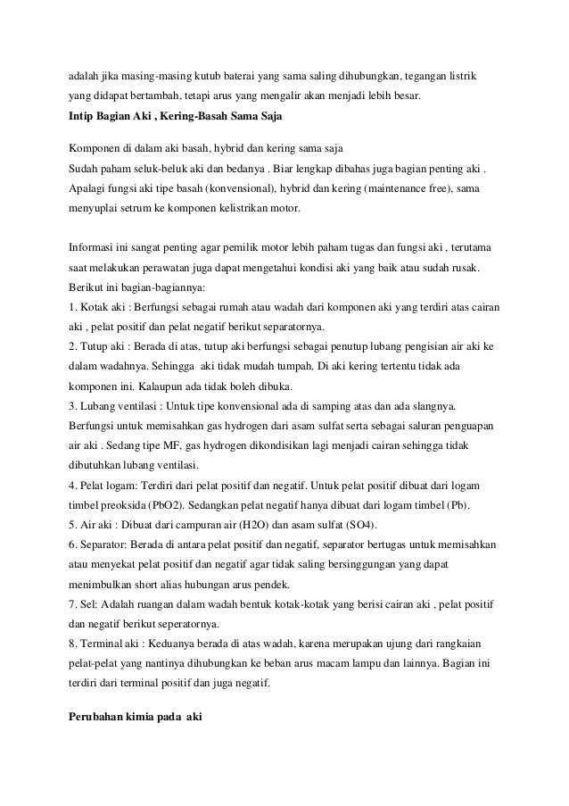 Contoh Makalah: Baterai/Aki pada Sepeda Motor