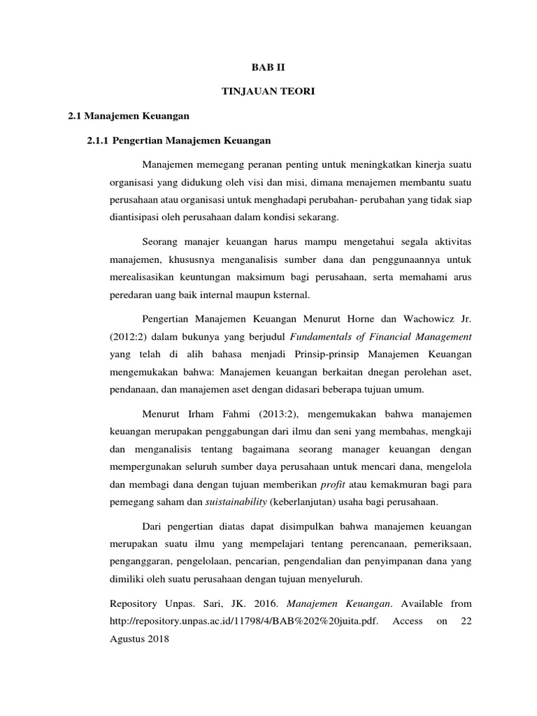 BAB II LANDASAN TEORI. Pengertian manajemen keuangan mengalami perubahan sesuai dengan - PDF Free Download
