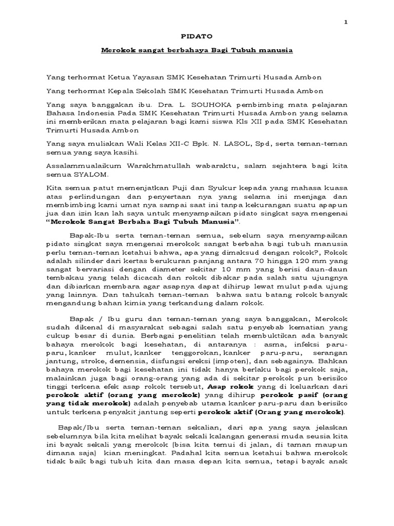 Pidato bahasa indonesia bahaya merokok tentang kesehatan 2