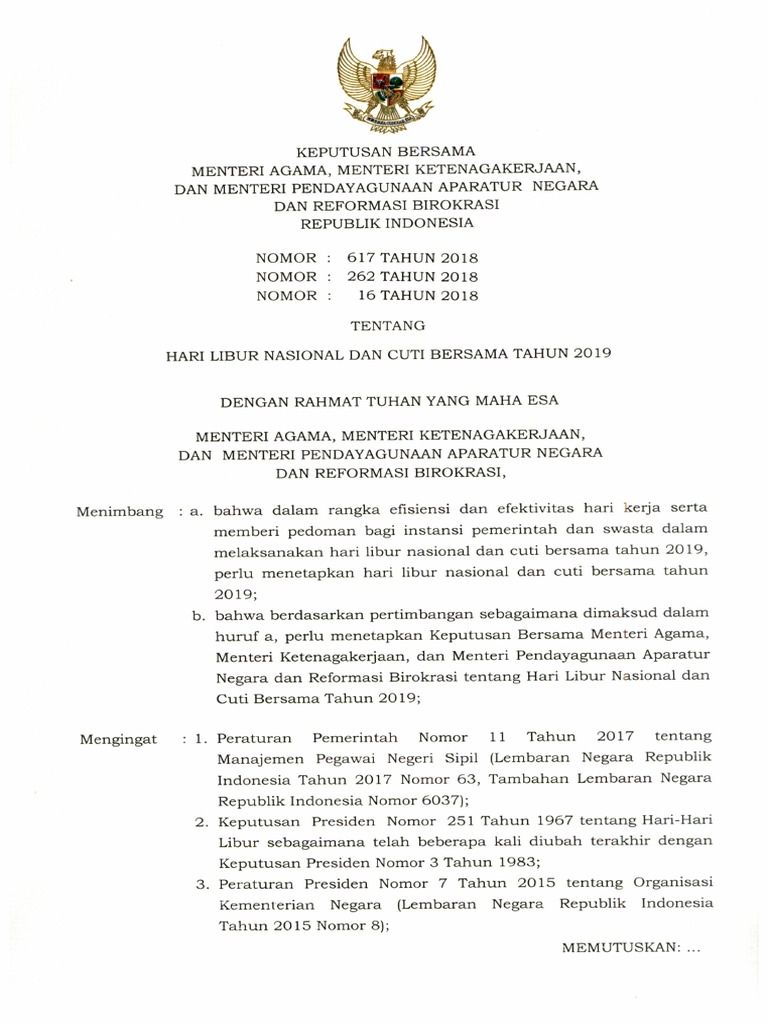 SKB 3 Menteri Tentang Hari Libur Nasional dan Cuti Bersama Tahun …