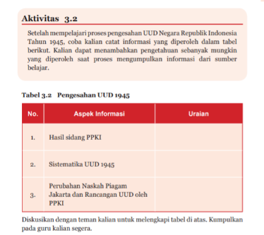 Tabel 3.2 Pengesahan UUD 1945 Aktivitas 3.2 Pkn Kelas 7 - Operator Sekolah