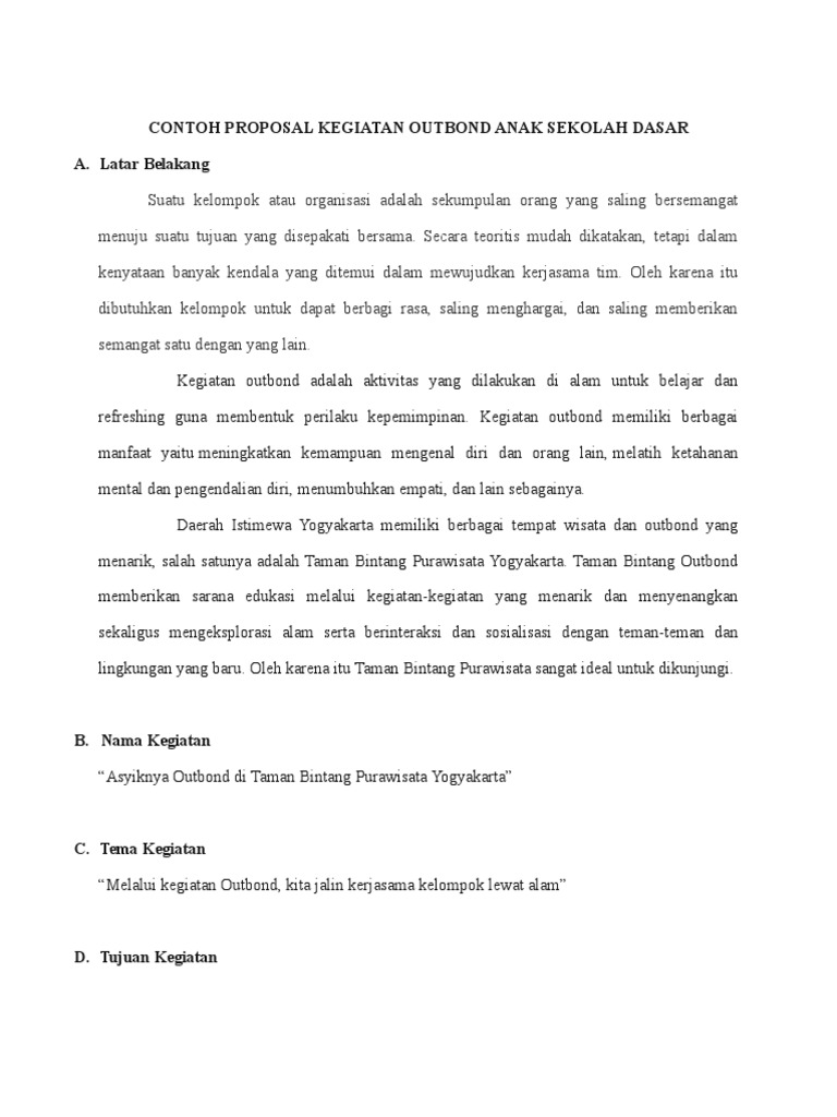 Contoh Proposal Kegiatan Outbond Anak Sekolah Dasar
