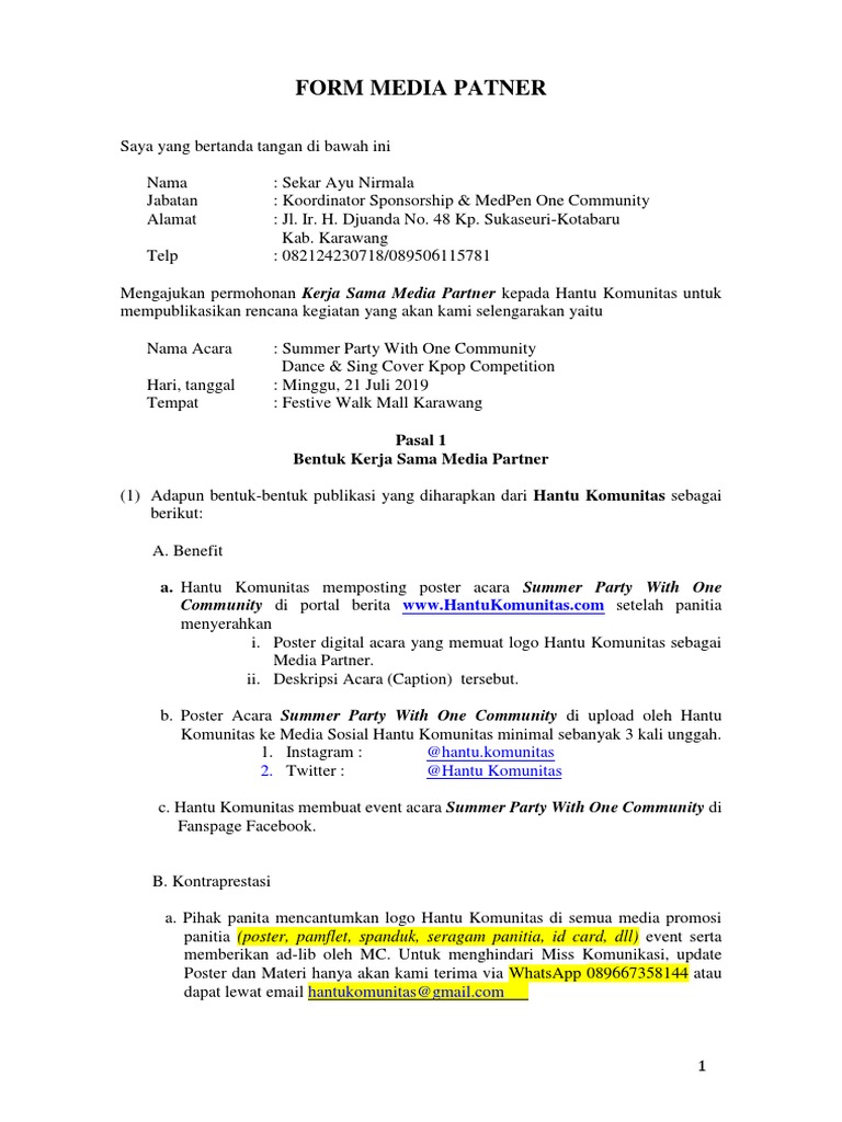 Contoh Surat Penawaran Kerjasama Media Partner di 2020 | Surat …