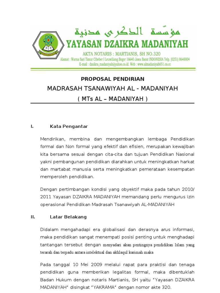 DOC) PROPOSAL PEMBANGUNAN GEDUNG MADRASAH | Miftah (Mix …