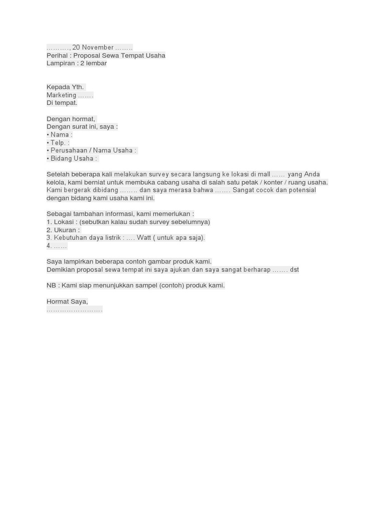 Contoh Proposal Pengajuan Sewa Tempat Usaha - Barisan Contoh