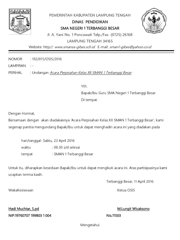 Surat Undangan Acara Perpisahan Sekolah - Guru Loyal
