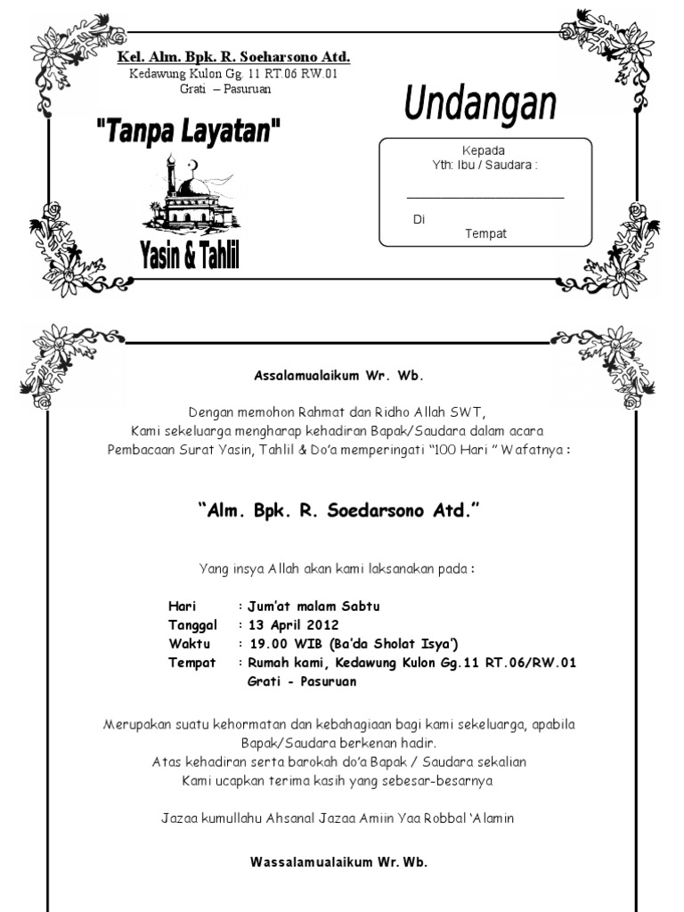 DOC) Contoh Undangan Tahlil | Ikromi Wida Utama - Academia.edu