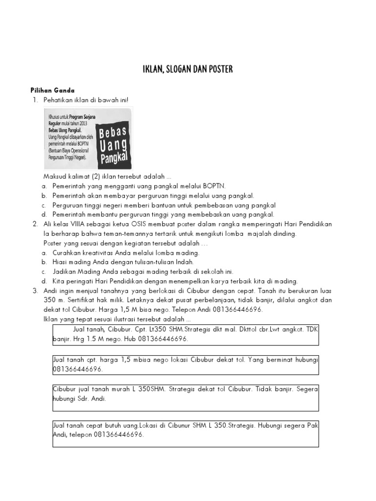 50 Contoh Soal Teks Iklan Pilihan Ganda beserta Jawabannya Kelas 12