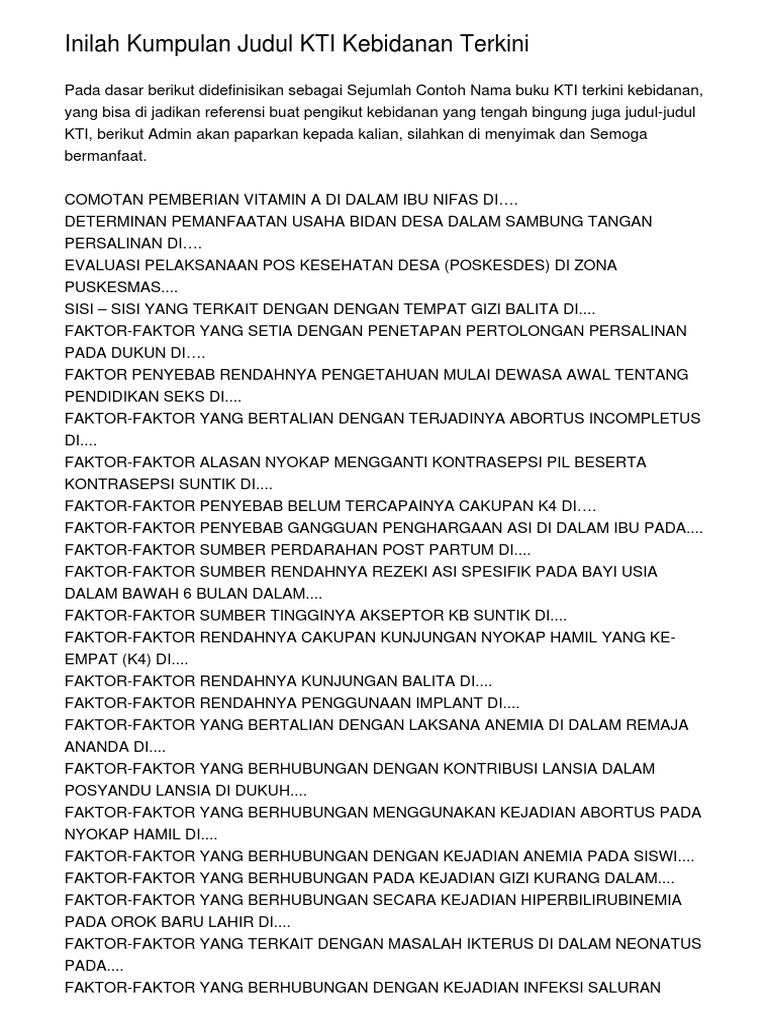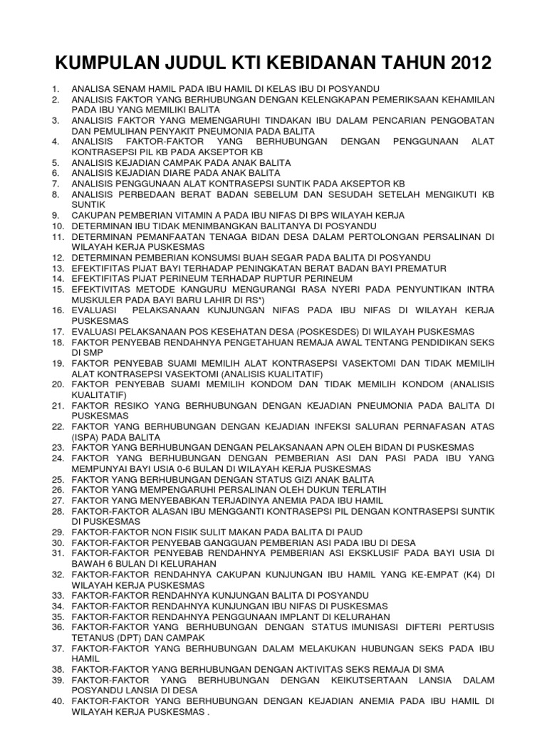 DOC) KUMPULAN JUDUL KTI DAN SKRIPSI KEBIDANAN | mufida hakim - Academia.edu