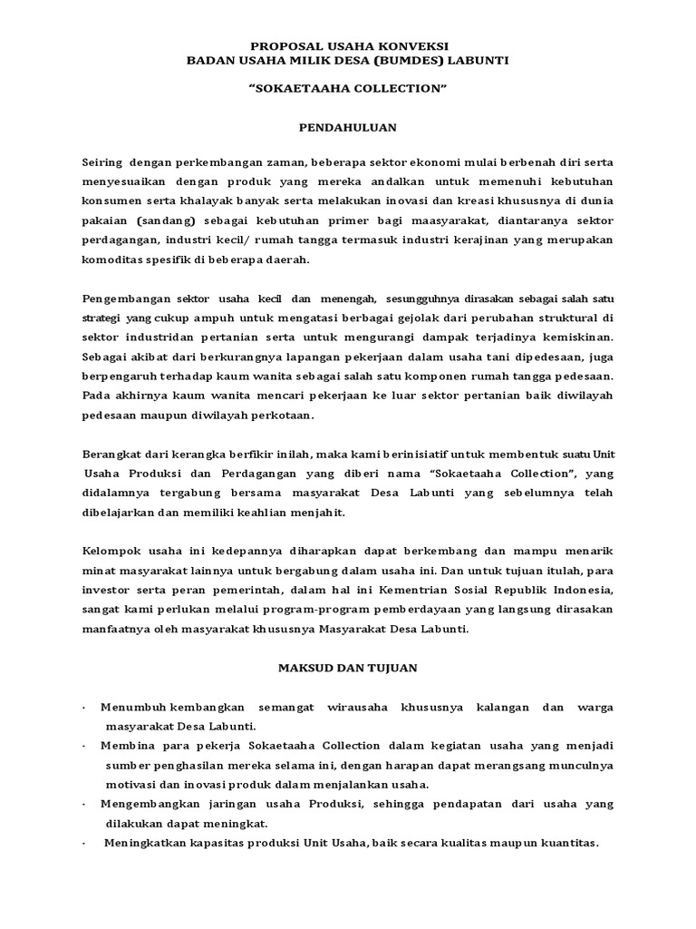 Contoh Proposal Usaha Konveksi