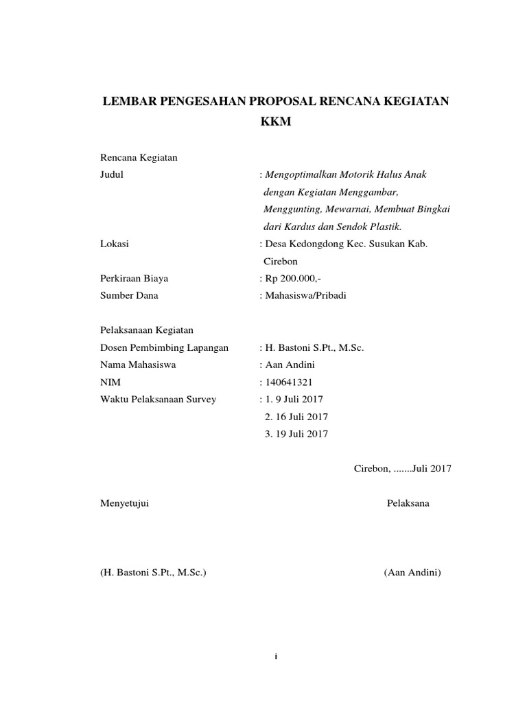 Lembar Pengesahan Proposal Rencana Kegiatan KKM