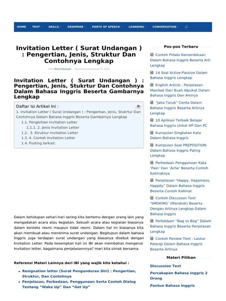Materi Pelajaran: Invitation Letter : pengertian, jenis, struktur dalam bahasa Inggris.