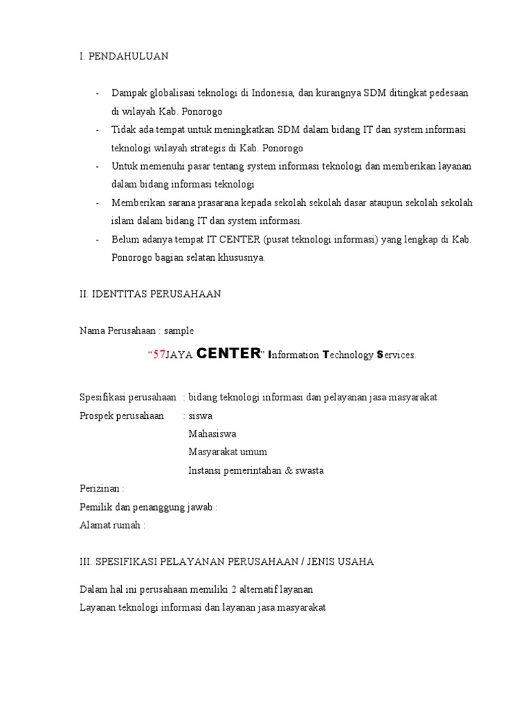 Contoh Proposal Usaha di bidang Teknologi Informasi. | Bagus' Territory