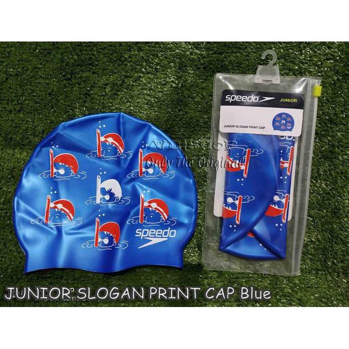 Topi Renang Anak SPEEDO Jr. SLOGAN PRINT CAP. 100%Original - Biru | Shopee Indonesia