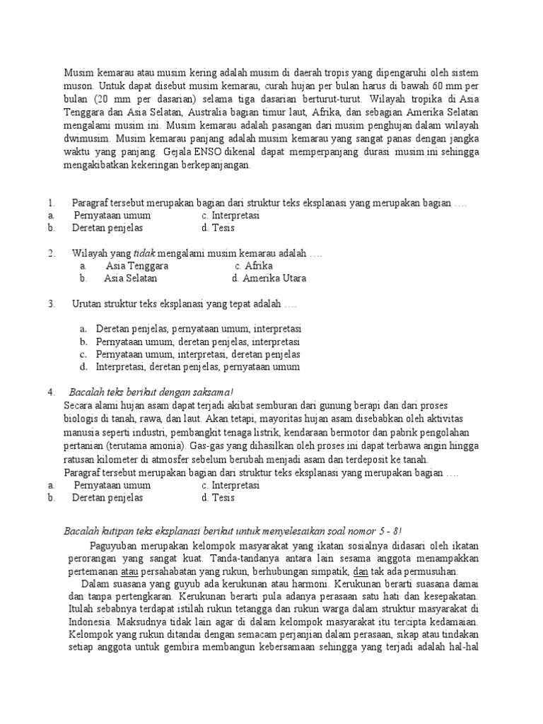 Soal Bahasa Indonesia Kelas 8 Semester 1 2 dan Jawabannya