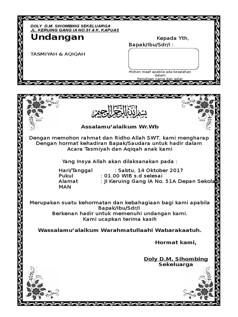 DOC) Undangan Aqiqah dino | andhika gilang oye - Academia.edu