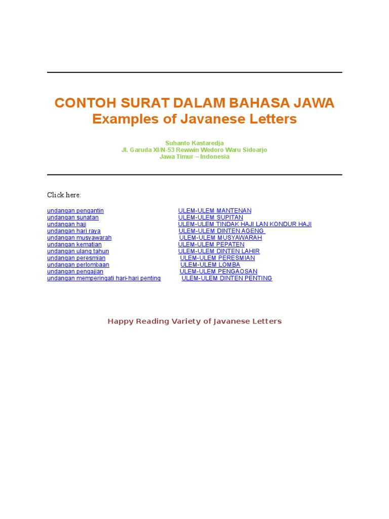 Contoh Surat Dalam Bahasa Jawa