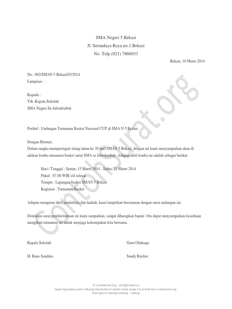 Contoh Surat Undangan Lomba Untuk Sekolah - Contoh Seputar Surat